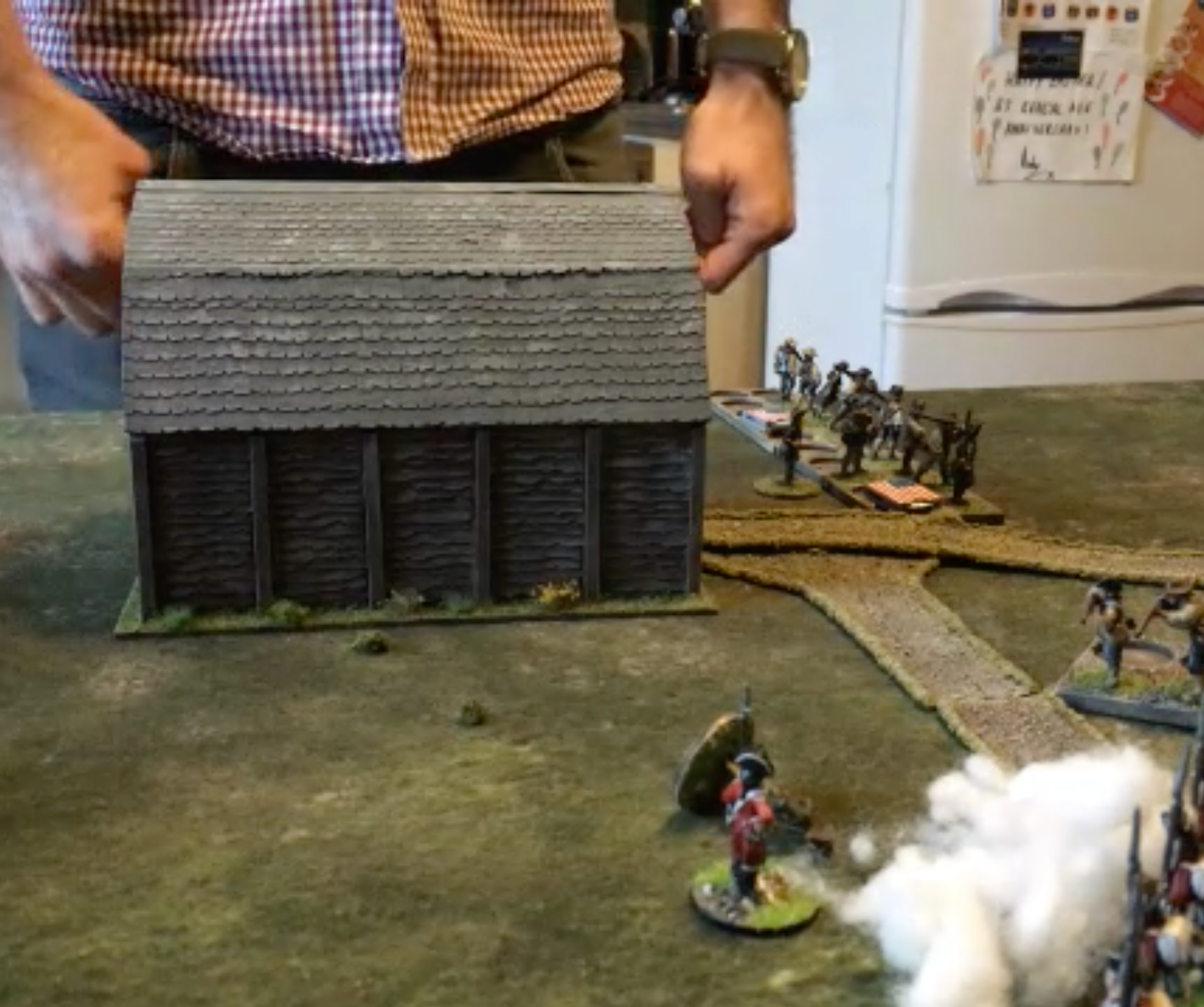 The British have every reason to believe most of the Americans are quartered in the big barn further down, but it pays to be careful.